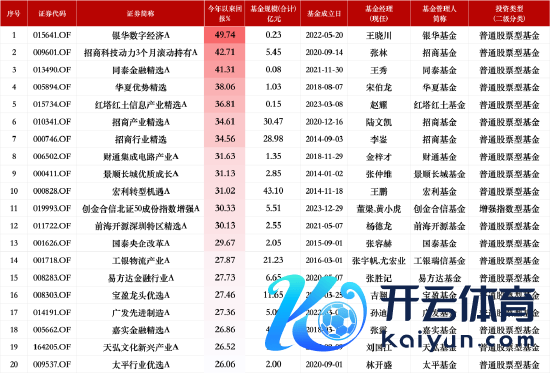 具体来看,暂获股票型基金2024年度红榜榜首的是基金司理王晓川解决的银华数字经济A,本年往复报为49.74%,最新基金范畴0.23亿元。榜二是招商基金司理张林解决的招商科技能源3个月诊治握有A,本年往复报为42.71%,最新基金范畴5.45亿元;榜三为同泰基金王秀解决的同泰金融精选A,本年往复报为41.31%,最新基金范畴0.08亿元。