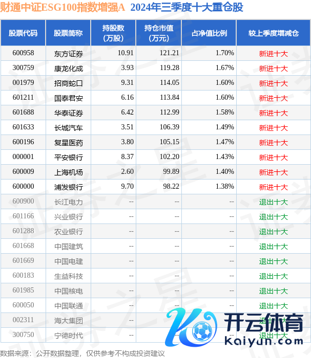 财通中证ESG100指数增强A为指数型-股票基金,把柄最新一期基金季报露馅,该基金财富成就:股票占净值比94.11%,无债券类财富,现款占净值比6.44%。基金十大重仓股如下: