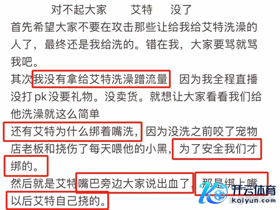 晚间,潘宏发文证实艾特死亡,同期还针对人人计划质疑逐一作念出了解说。率先,他否定以此为由炒作蹭热度,同期解说是因为为了安全才绑住了艾特的嘴,看重艾特躁动咬东谈主。另外,有东谈主在直播间中看到艾特嘴巴处的血,实质上是狗狗我方挠的,和他东谈主无关。