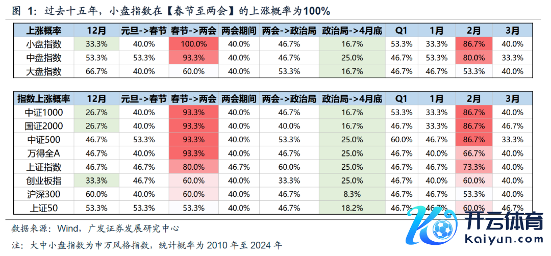 而从历史训戒来看,春节之后市集行将迎来一年当中“日期效应”最强的一段窗口期:已往十五年,【春节至两会】这一时辰窗口,市集举座的高涨概率格外93%,申万小盘指数的高涨概率是100%。