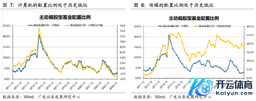 另一方面,基金四季报夸耀出TMT里面握仓分化,其中硬件联系的AI芯片/SOC等建立比例迭翻新高,机器东谈主/光模块/浮滥电子也处于较高水平,下表2夸耀,22年以来公募单季增握第一的行业,鄙人个季度的市集表现排行往往处于中卑劣;而软件及应用规模的策画机/传媒等建立处于历史极低位置,如果低握仓板块遭遇产业催化剂,带来的股价弹性往往更大。