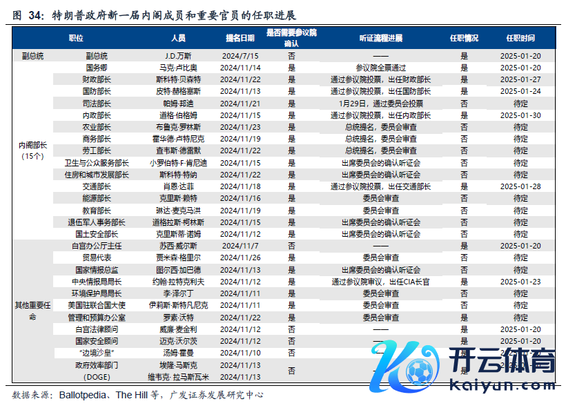 1、特朗普新一届内阁成员及要津东谈主物的任职情况