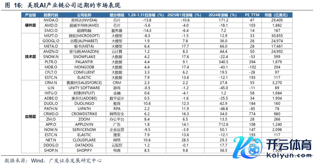 随后,2025年1月20日,大规模使用强化学习技能的DeepSeek-R1发布,在数学、代码、自然话语推理等任务上,性能并列 OpenAI o1 郑再版。DeepSeek的低资本实际+强化学习格局对大规模插足进行预实际的国外AI发展格局产生冲击,从1月28日到1月31日,好意思股市集AI产业链公司的表现来看,硬件端公司的跌幅较大,关联词应用端(包括大模子和云策画)多数表现较可以。