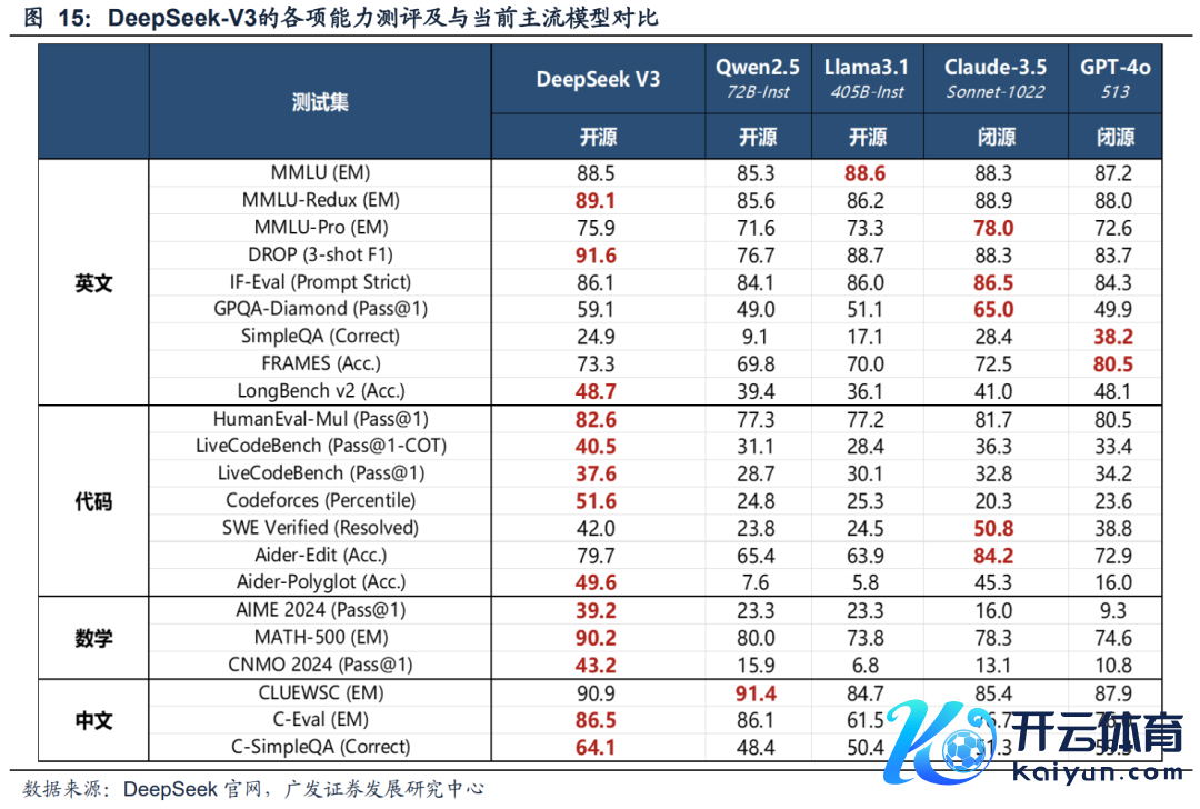 中期来看,科技成长格调有望从头迎来事迹的趋势性占优。24年12月,DeepSeek-V3模子发布,以权臣更低的实际资本实现了与世界先进闭源模子不分昆季的概括才气。DeepSeek-V3模子的实际资本约558万好意思元。对比来看,GPT-4o的实际资本梗概1亿好意思元,V3实现了权臣的资本裁减。而才气测评来看,在英文、代码、数学、中语等各维度,DeepSeek-V3在开源模子中位列榜首,且与GPT-4o、Claude-3.5-Sonnet等头部闭源模子不分昆季。
