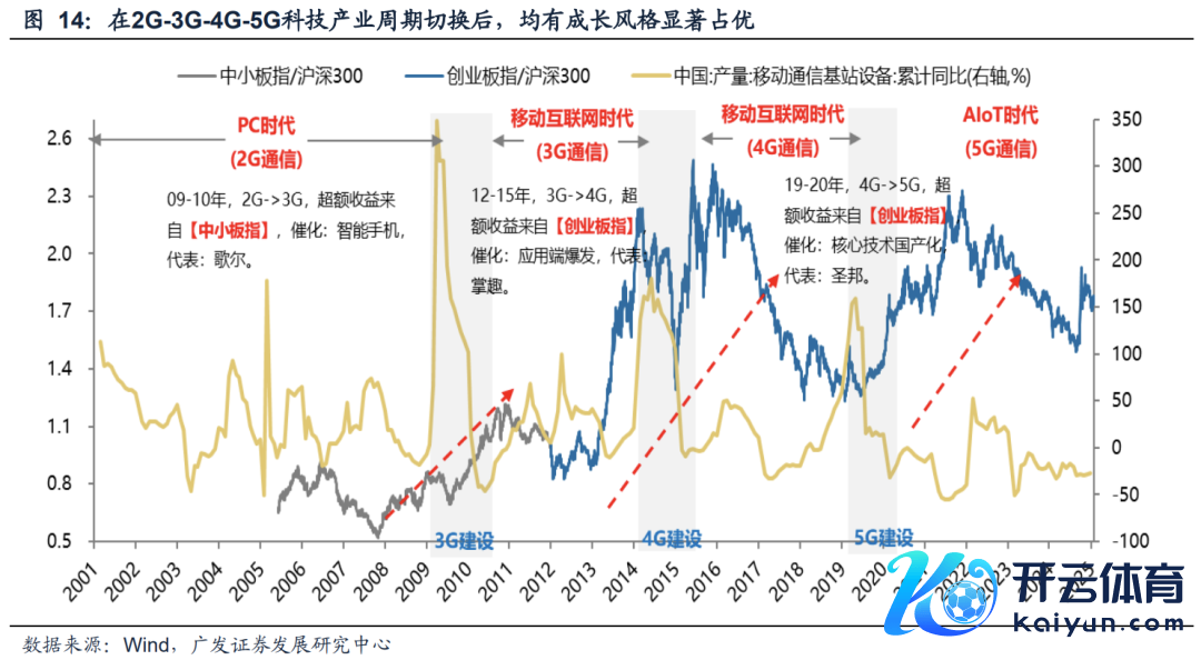 如果用创业板指雷同代替成长格调,沪深300雷同代表,可以看到在13-15年和19-21年景长格调握续占优的背后,齐有成长场地相对于价值场地事迹增速差走阔、事迹相对上风扩大。而这种事迹相对上风扩大的背后,齐有产业周期的要紧变化,比如13年4G派司下发、从3G期间向4G期间切换,比如19年5G派司下发、从4G期间向5G期间切换、专家半导体周期回升、国产替代加快,比如19年年底国产Model 3驱动委用、20年“双碳宗旨”提议。