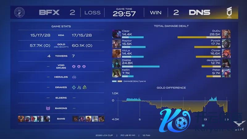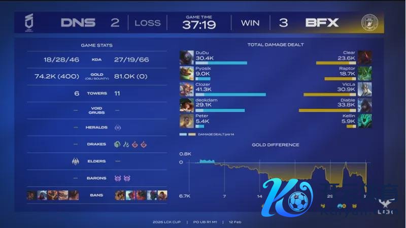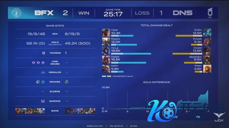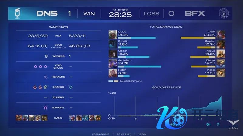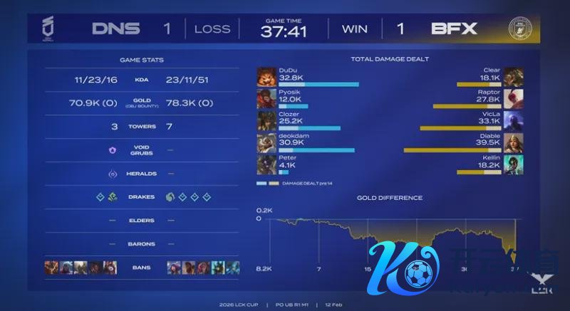 经由漫长的休整期之后,LCK 2026春季赛终于在1月14日,阐发拉开序幕。各支重组之后的军队,将向T1发起挑战;而T1则是在更换了AD之后,迎战各路硬汉。 按照赛程安排,2月12日的比赛,由BFX对阵DNS。他们究竟谁能闯进季后赛,让咱们一皆来看一下吧。 Dudu,战至终末,自刎升天!BFX五局校服DNS 第一局比赛,DNS蓝色方,禁用:鳄鱼,飞机,潘森,韦鲁斯,兰博,采用:DuDu狼母,Pyosik梦魇,Clozer发条,deokdam芸阿娜,Peter洛;BFX红色方,禁用:泰坦,璐璐,