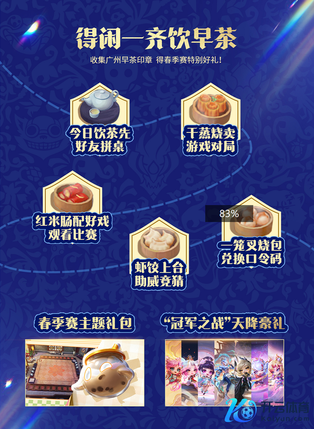 弈士们: 参与步履集聚广州早茶印记,得春季赛尽头好礼! 得闲沿途饮早茶!2026《金铲铲之战》公开赛春季赛-广州站专属步履现已开启!3月17日至3月29日,弈士们可通过完成对局、不雅看比赛、参与恭维等任务集聚“胖胖龙早茶印记”,即可前去【胖胖龙早茶铺】兑换春季赛尽头好礼。 金铲铲之战 计策, 铁汉定约, 自走棋, 回合制, 对战 稽查更多 立即下载 3月20日前,初度完成步履任务时可特等获取3月21日体育游戏app平台“冠军之战”决赛日抽奖码,有契机赢取“天选之子”至臻大礼包! 赛程: 3月1