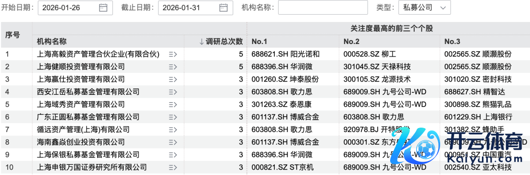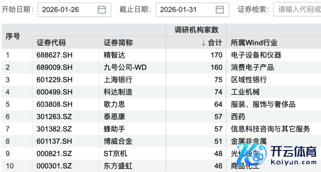 本周以来,机构调研上市公司宥恕不减。机械成就、估量机等行业调研热度络续,电子、机械成就行业近5天汲取调研机构派系位居前哨,干系上市公司被调研频率较高。 本周(1月26日—1月30日)精智达汲取170家机构调研,成为同时获机构调研派系最多的上市公司。公司近期将强13.11亿元半导体测试成就销售左券备受市集关注。 本年以来超600家公司获机构调研 适度发稿,本年以来,共有超600家上市公司败露机构投资者调研纪录。其中大金重工获机构调研次数最多,达209家。 本年以来调研机构派系排行前十A股上市公司
