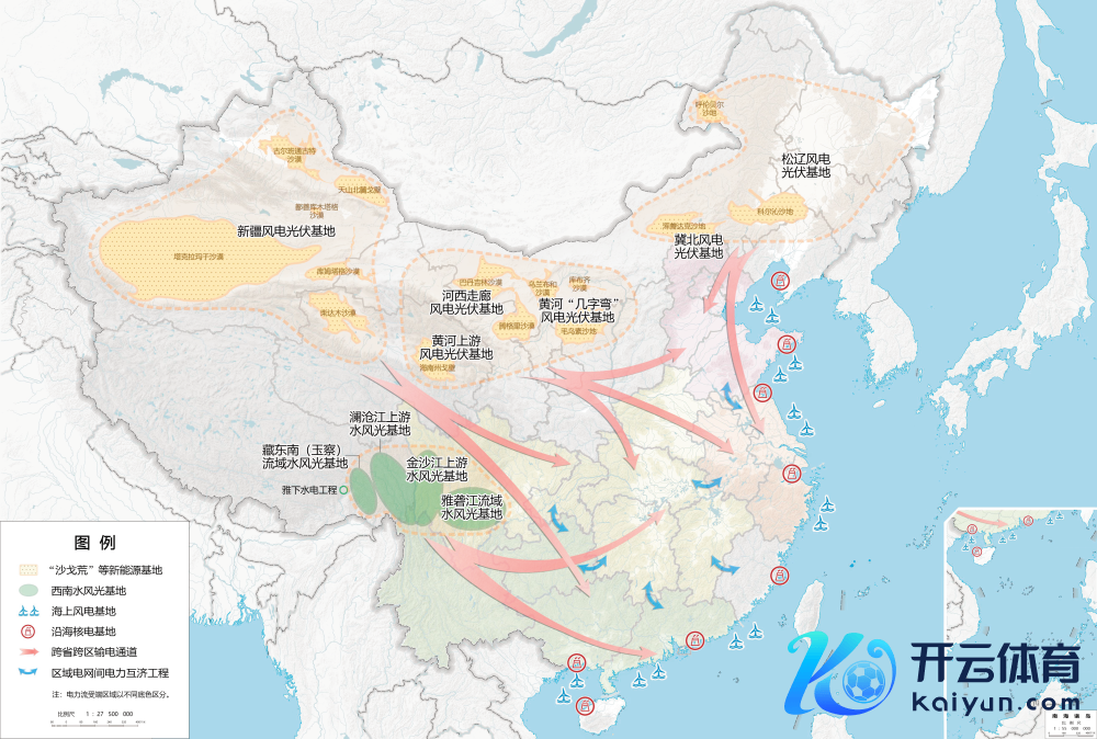从默示图不错看到,活泼朔方的“沙戈荒”等新动力基地,雅砻江、金沙江上游、澜沧江上游等流域的水情景一体化基地,从渤海到南海的海优势电基地以及沿海核电基地,各地因地制宜,情景水核等多能并举,串点成线、从点到面,为加速构建清洁低碳安全高效的新式动力体系夯实基础。