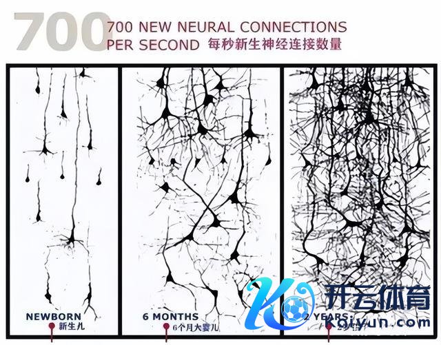 这个阶段孩子大脑容量会从成东谈主四分之一快速发育到85%,神经元每秒以700到1000个速率搭接,外界刺激平直决定发育质料。